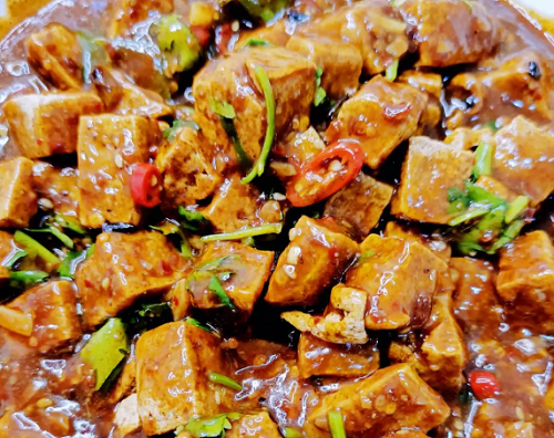 豆腐作(zuò)為(wèi)一種高(gāo)蛋白、低(dī)脂肪的健康食品,含有(yǒu)豐富的植物性雌激素和(hé)鈣質等營養成分。澆汁豆腐通(tōng)過獨特的烹饪方式,不僅保留了豆腐的營養價值,還(hái)增加了豐富的口感和(hé)風味。