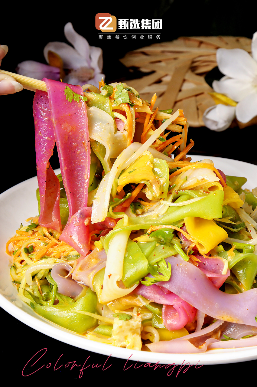 市場(chǎng)熱度:涼皮是起源于陝西關中地區(qū)的傳統美食,包括用小麥制(zhì)作(zuò)的面皮、大(dà)米制(zhì)作(zuò)的米皮。涼皮是暑熱天氣裏可(kě)口的美食,面皮筋道(dào),麻汁濃醇,爽滑清涼,滋味十足,在全國各地都非常流行(xíng)。傳統涼皮出品潔白,而彩色涼皮在和(hé)面時(shí)添加天然果蔬汁,并輔以神秘保色手法,使得(de)做(zuò)出的涼皮呈現果綠、玫紅、金黃等缤紛色澤。五彩涼皮集顔值與美味于一體(tǐ),而且由于添加果蔬汁,還(hái)具有(yǒu)補充維生(shēng)素、抗氧化等營養功效。